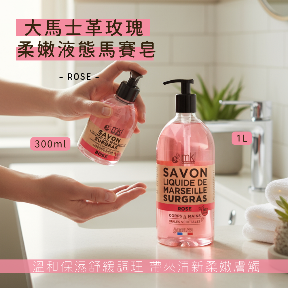 【MKL 大馬士革玫瑰 柔嫩液體馬賽皂 】