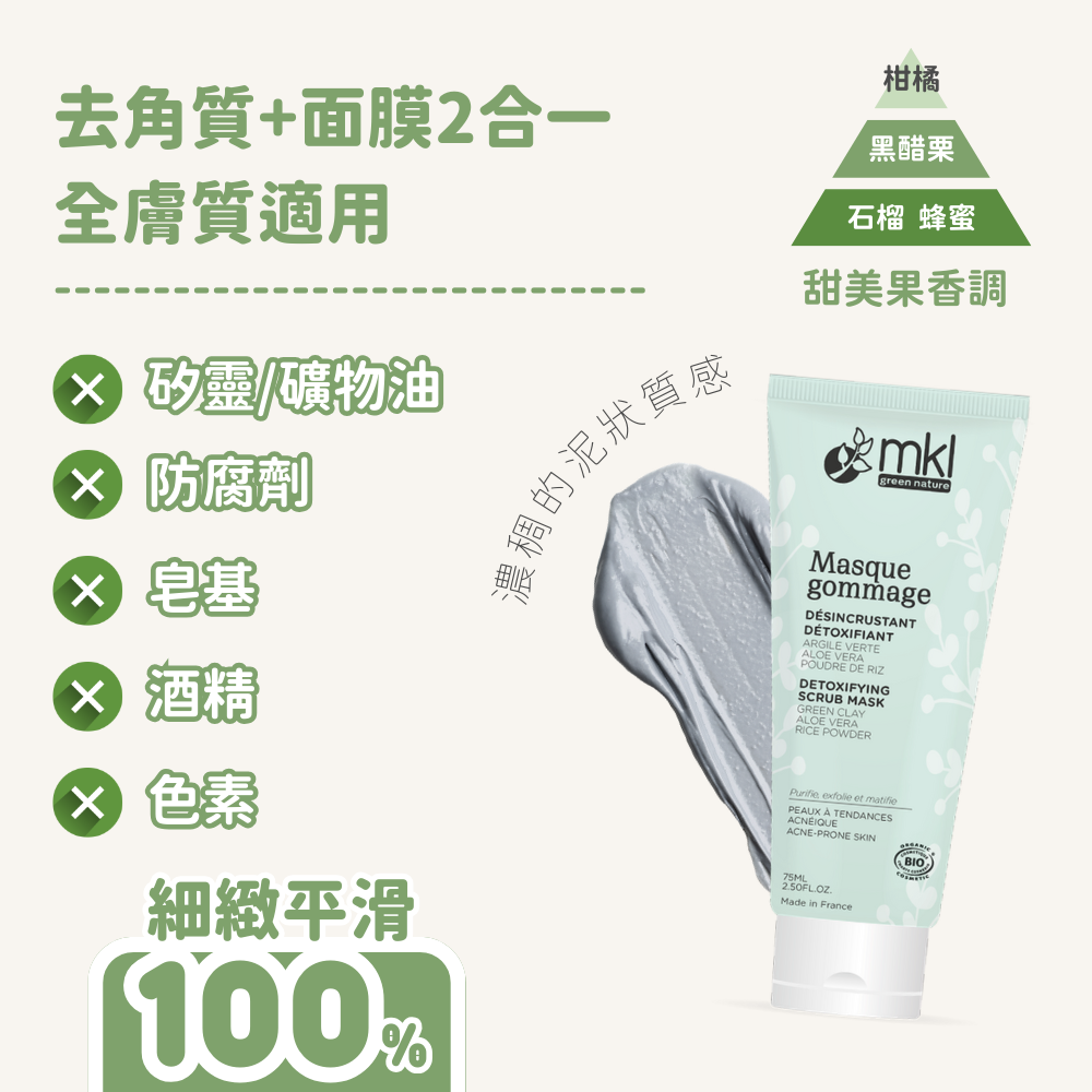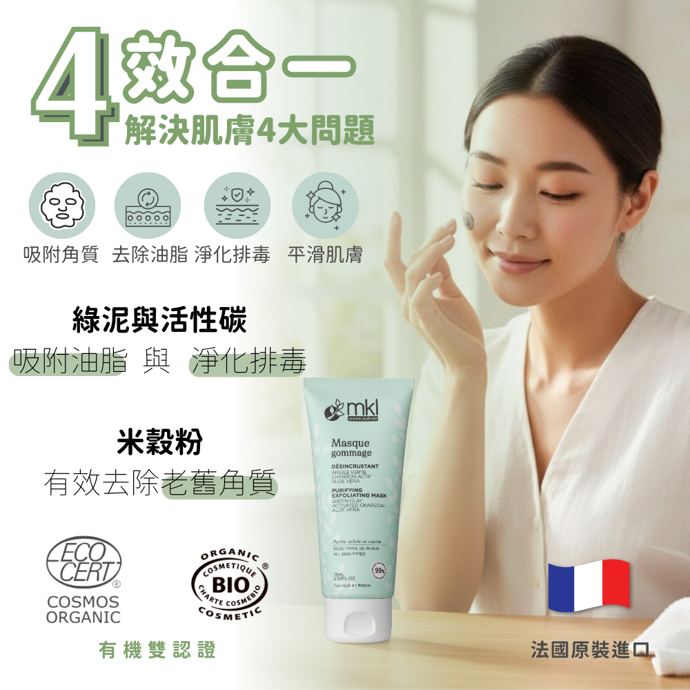 【MKL 有機認證 綠泥活性碳 淨化去角質面膜 】