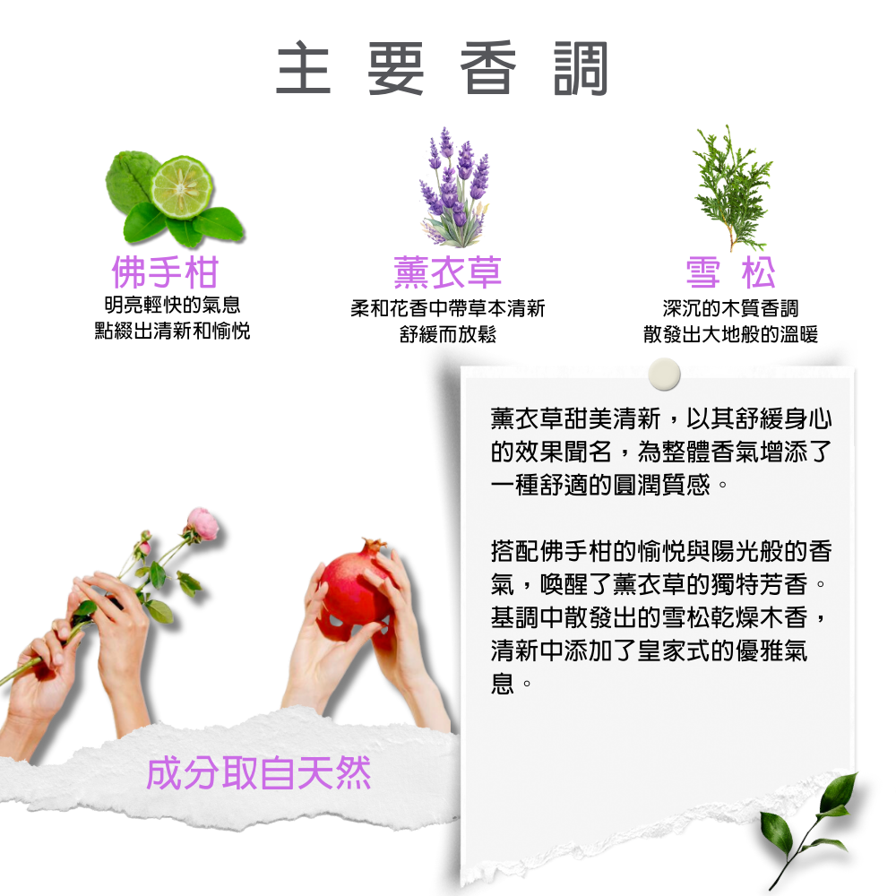 香調|佛手柑、薰衣草、雪松
