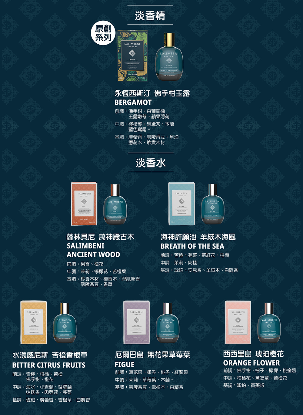基調:珍貴木材、檀香木、降龍涎香、零陵香豆、香草。