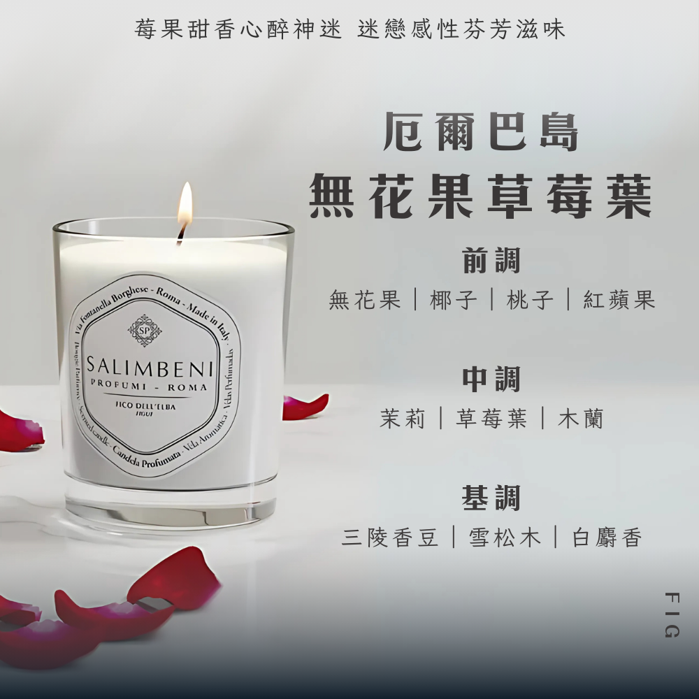 一種精緻果香味,帶著些許貪心俏皮的感覺。夏天地中海的厄爾巴島,無花果在全島盛開怒放,散發出誘人的甜味。Salimbeni調香師在主調中別出心裁地加入了草莓葉,使香味帶來淡淡的青綠色氣息。最後的零陵香豆、雪松木及白麝香,則將果葉的清甜香轉化成另種獨特的持久性感。