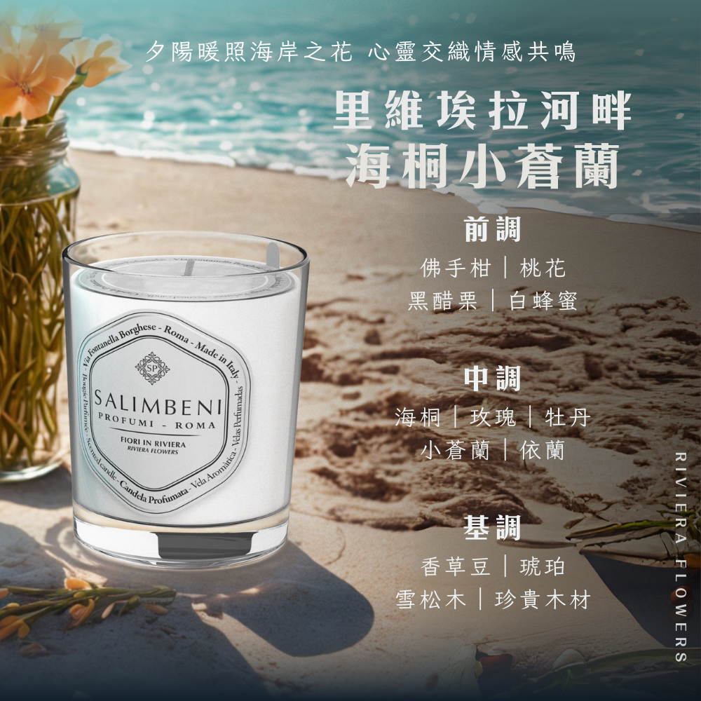 義大利里維埃拉的香水,引領出一趟北義地中海的嗅覺之旅,體驗這人生必訪旅遊勝地!感受地中海風、海浪拍打岩石的聲音、日落的溫暖陽光及許多芬芳氣味的豐富情感。黑醋栗的果香、帶出清新宜人的花蜜前調,在中心綻放出漫佈在義大利Riviera海岸線的花朵:畢索佛蘭海桐。雪松木主導了基調,具有明顯而令人陶醉的香氣,使主調的海桐、玫瑰、小蒼蘭、依欄更加清透且富有層次感。