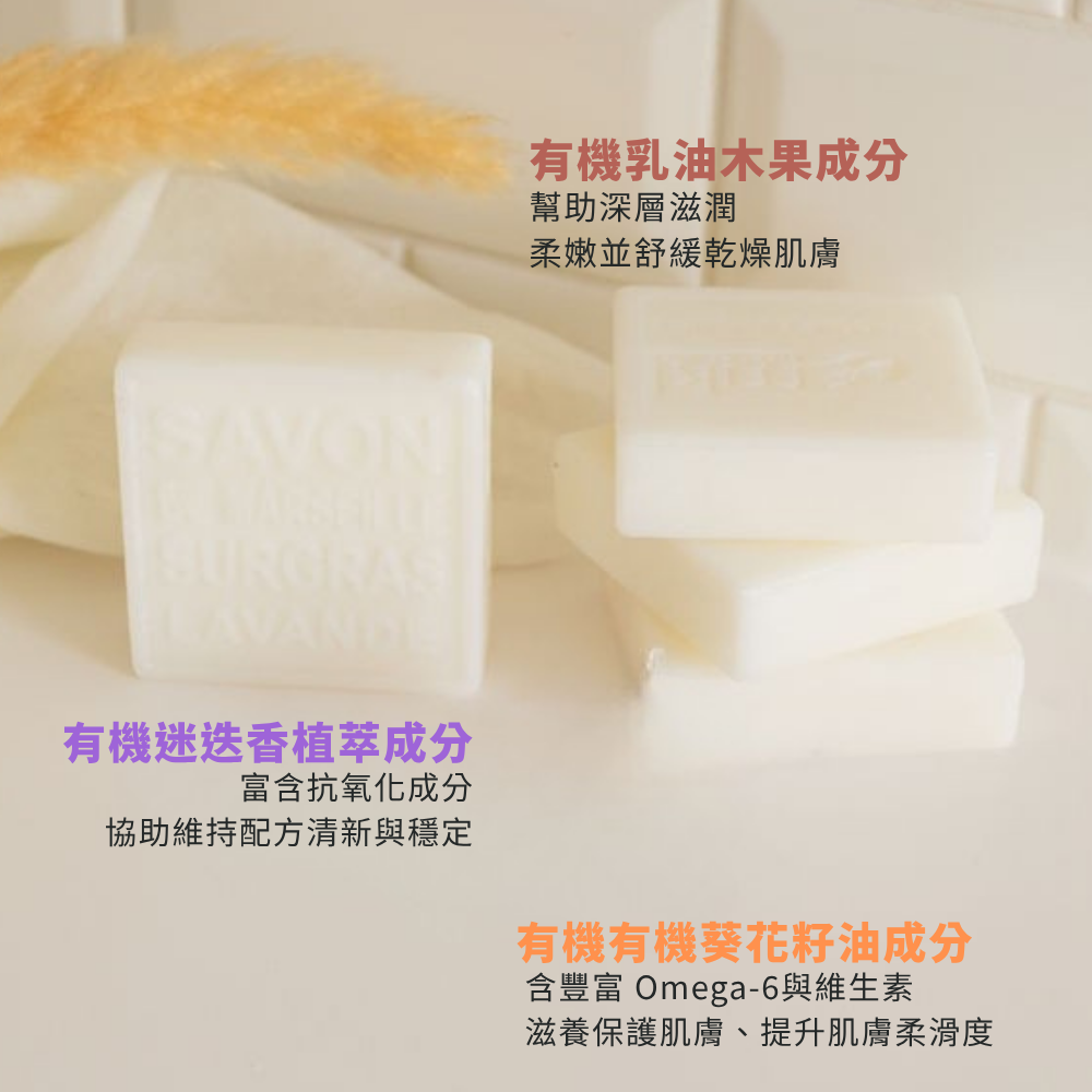 🧼 百年古法馬賽皂,滋潤與清潔平衡。