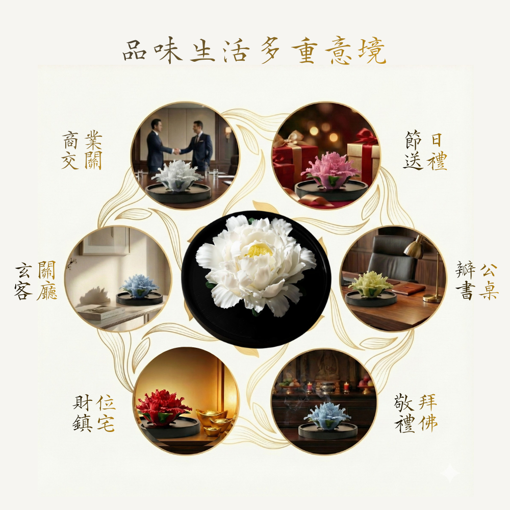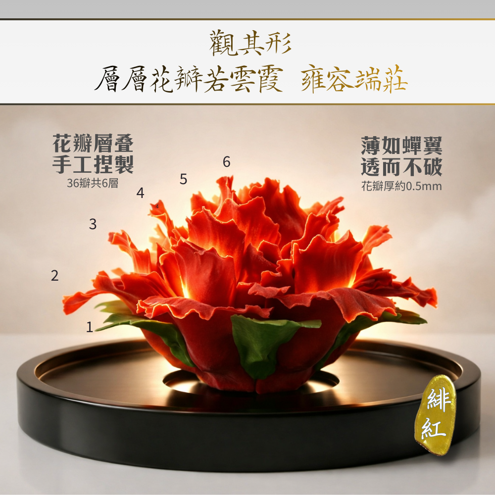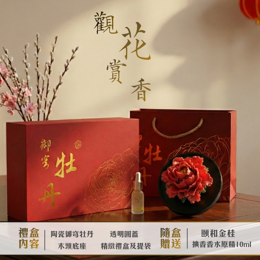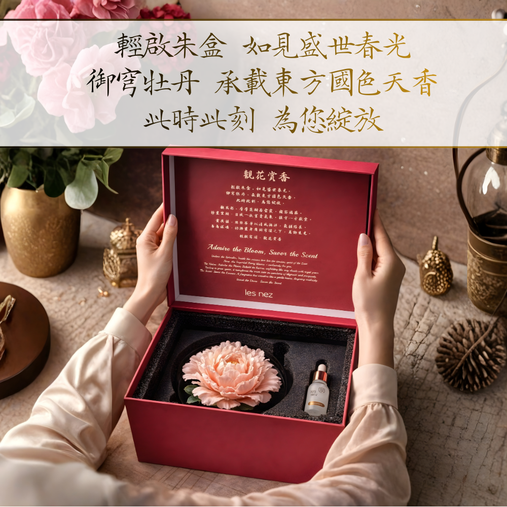 輕啟朱盒,御穹牡丹於案頭綻放,