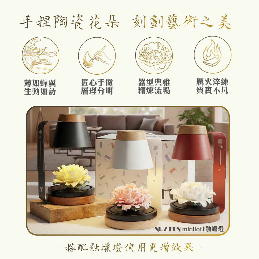 🎁禮盒內容:陶瓷御穹牡丹、木頭底座、透明圓蓋及精緻禮盒及提袋